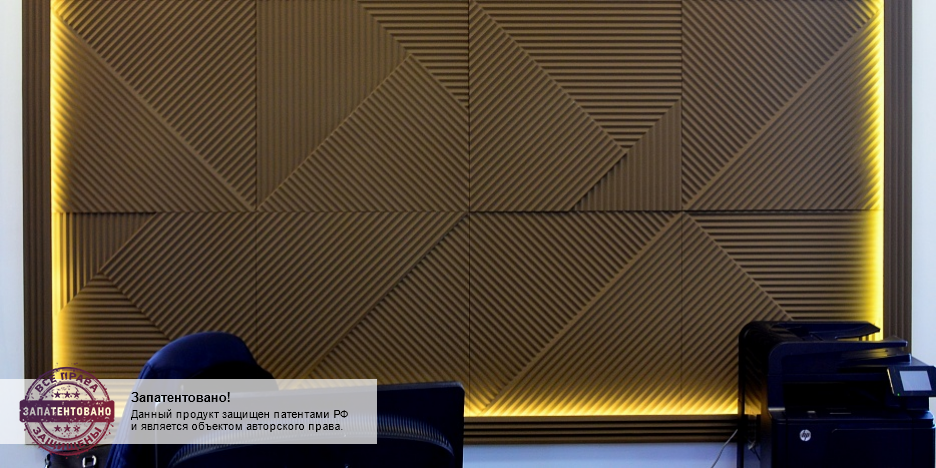 Уникальный дизайн - не требуется раскладка панелей! FIELDS - простор для Вашего воображения, Вы сами моделируете рисунок во время монтажа, произвольно поворачивая любую из панелей на 90 или 180 градусов. И при этом получаете уникальный геометрический дизайн стены.