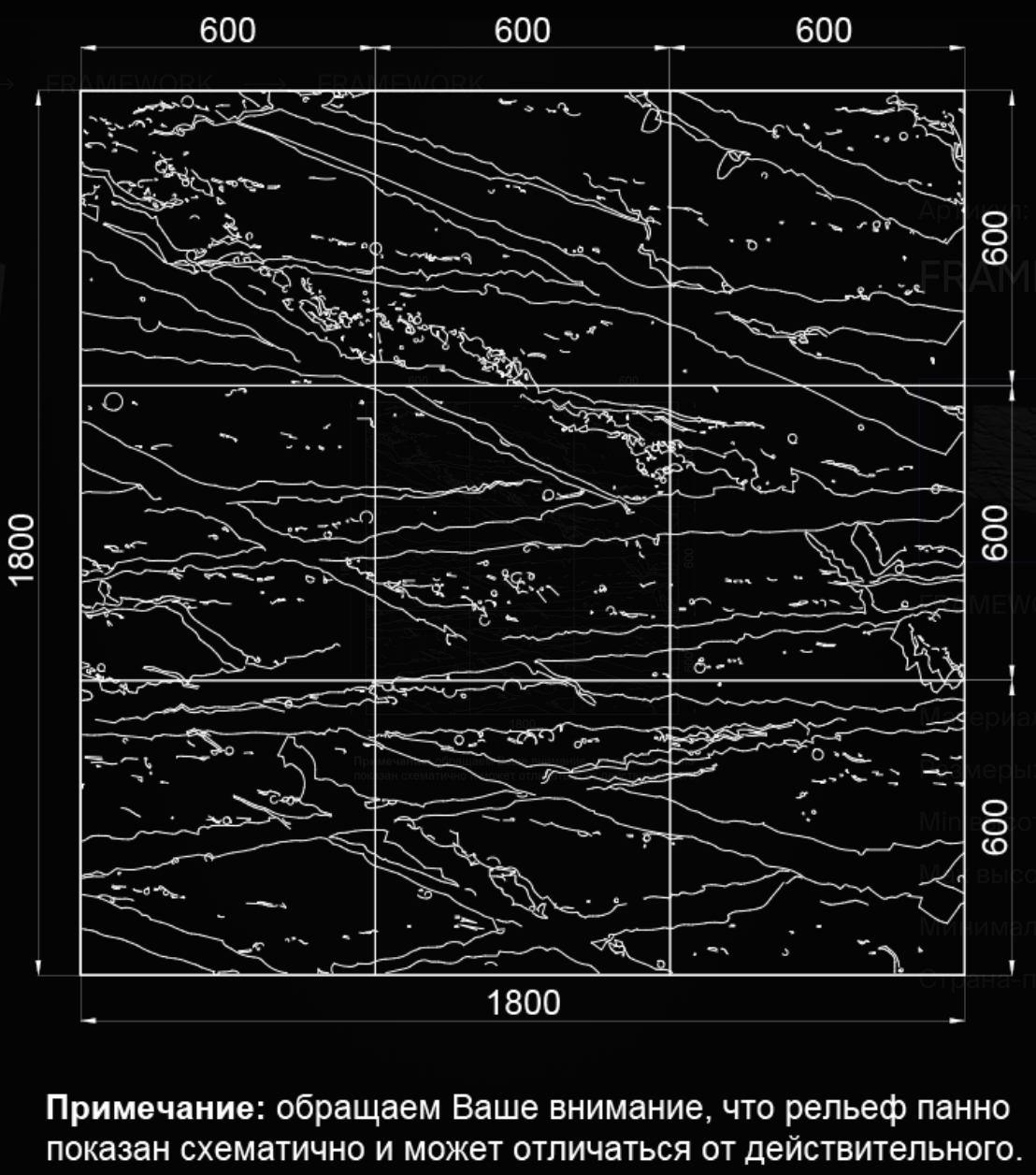Панно Framework — это настоящая симфония природы, которая привнесет в ваше пространство чистую энергетику и непоколебимый дух. Его скальная текстура с имитацией трещин напоминает о суровых скалах, величественных горах, поднимающихся к небесам утесах. Инсталляция вызывает ассоциации с недоступными хребтами, где время, кажется, остановилось, и каждое мгновение наполнено красотой и величием природы. Панно размером 1800х1800 мм состоит из девяти 3D-панелей из натурального гипса. Оно словно приглашает вас совершить путешествие в сердце дикой природы. Элементы монтируются встык, а швы незаметно затираются, образуя эффект бесшовной стены, безупречно имитирующей скалистую текстуру с трещинами, что добавляет интерьеру гармонии и завершенности. При желании сформировать масштабную композицию инсталляцию можно дополнить панелями справа, слева, сверху и снизу.