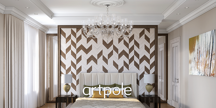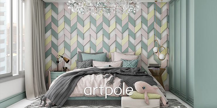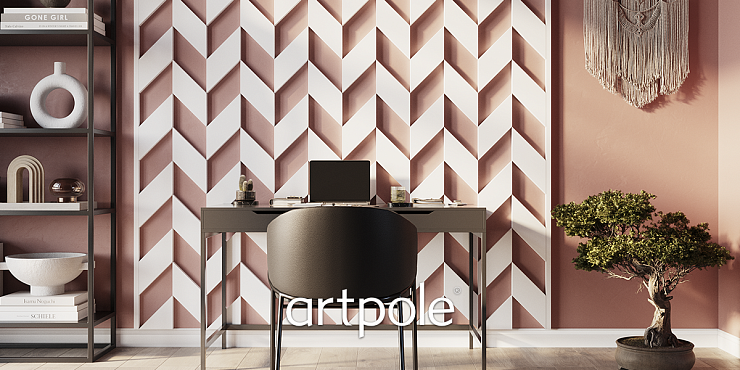 Панель KOLOS, выполненная в форме неправильного прямоугольника, лучше всего будет выглядеть в комбинации различных цветов и фактур, распределенных на стене без особого порядка. Такое решение придаст немного хаоса и станет настоящей изюминкой интерьера.