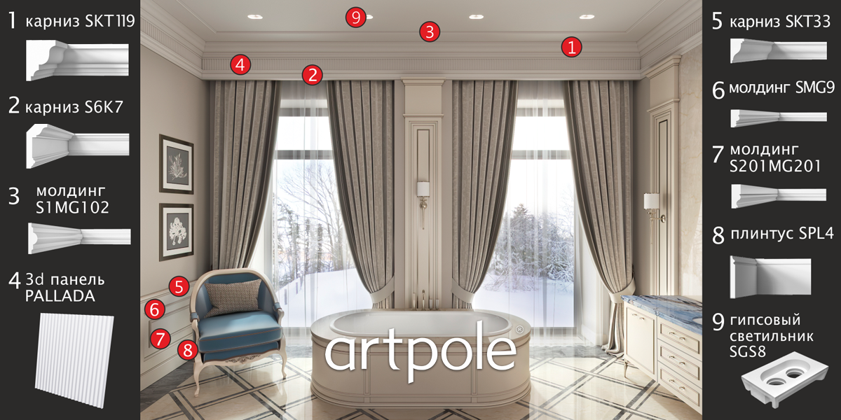Световой карниз SKTL17 Материал: гипс Артикул: SKTL17 Размер: H110x120 мм 1060 руб./п.м. |