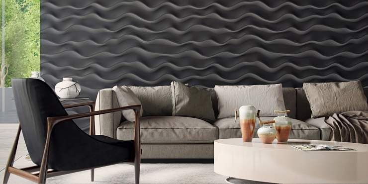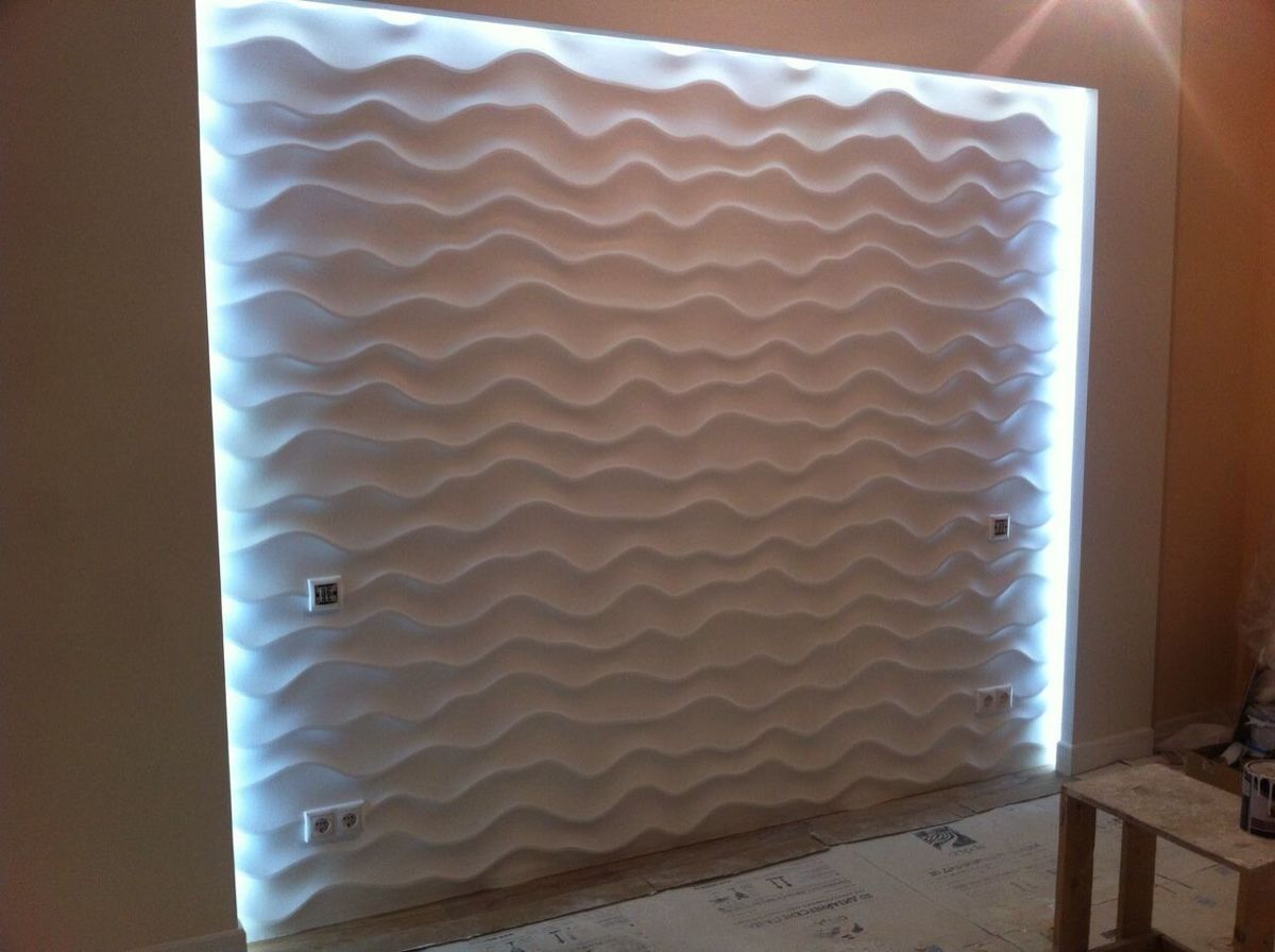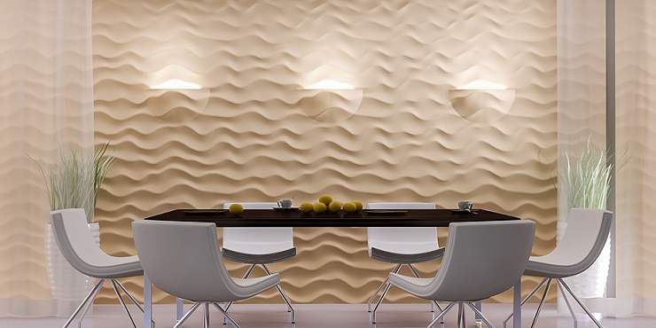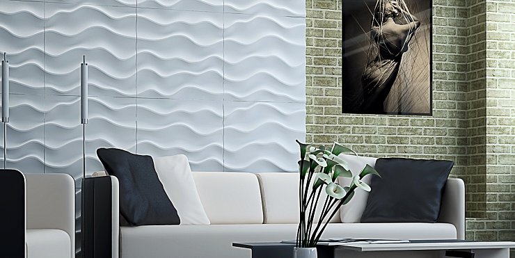 Декоративные панели 3д Sandy отличаются плавными изгибами и очень красивой текстурой. Дизайн выполнен таким образом, что каждая линия кажется уникальной, и повторяемость панелей совершенно незаметна глазу. Отделочный материал идеально подойдет для создания дизайна в стиле хай-тек или в эко-стиле. Стены, декорированные этими панелями, напоминают песчаные волны горячей пустыни или легкую рябь на гладкой поверхности бескрайнего океана. Если Вы хотите усилить этот эффект, достаточно окрасить декоративные стеновые панели в соответствующий цвет – синий или песочный, используя плавный переход оттенка от темного к более светлому. Интерьер можно дополнить мебелью с лаконичным дизайном и оригинальными комнатными растениями.