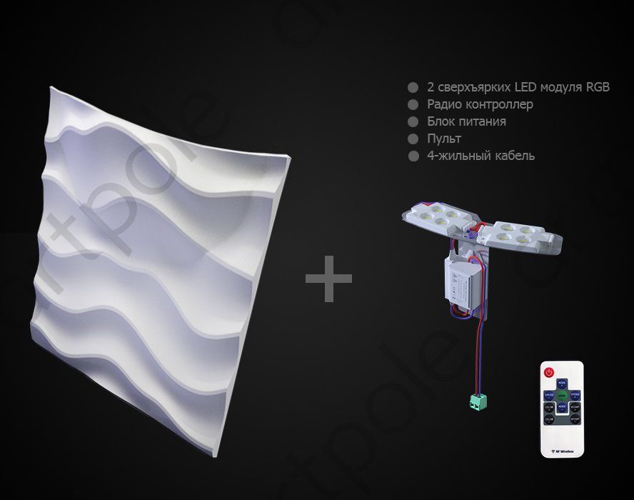 Гипсовая панель Sandy 2 LED (RGB) Размер: 600x600x80 мм Вес: 6,4 кг min высота рельефа: 11 мм max высота рельефа: 80 мм Количество в упаковке: 1 шт.