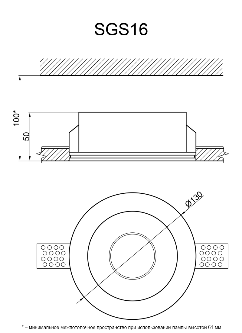 *Монтажное отверстие должно повторять форму светильника и быть на 5мм больше его габаритных размеров
