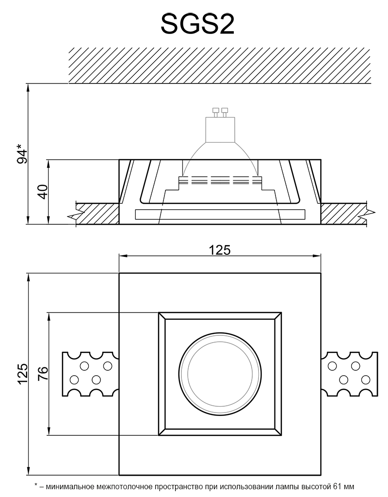 *Монтажное отверстие должно повторять форму светильника и быть на 5мм больше его габаритных размеров