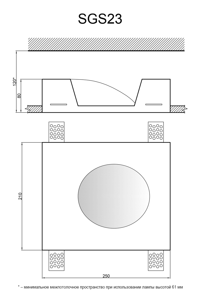*Монтажное отверстие должно повторять форму светильника и быть на 5мм больше его габаритных размеров