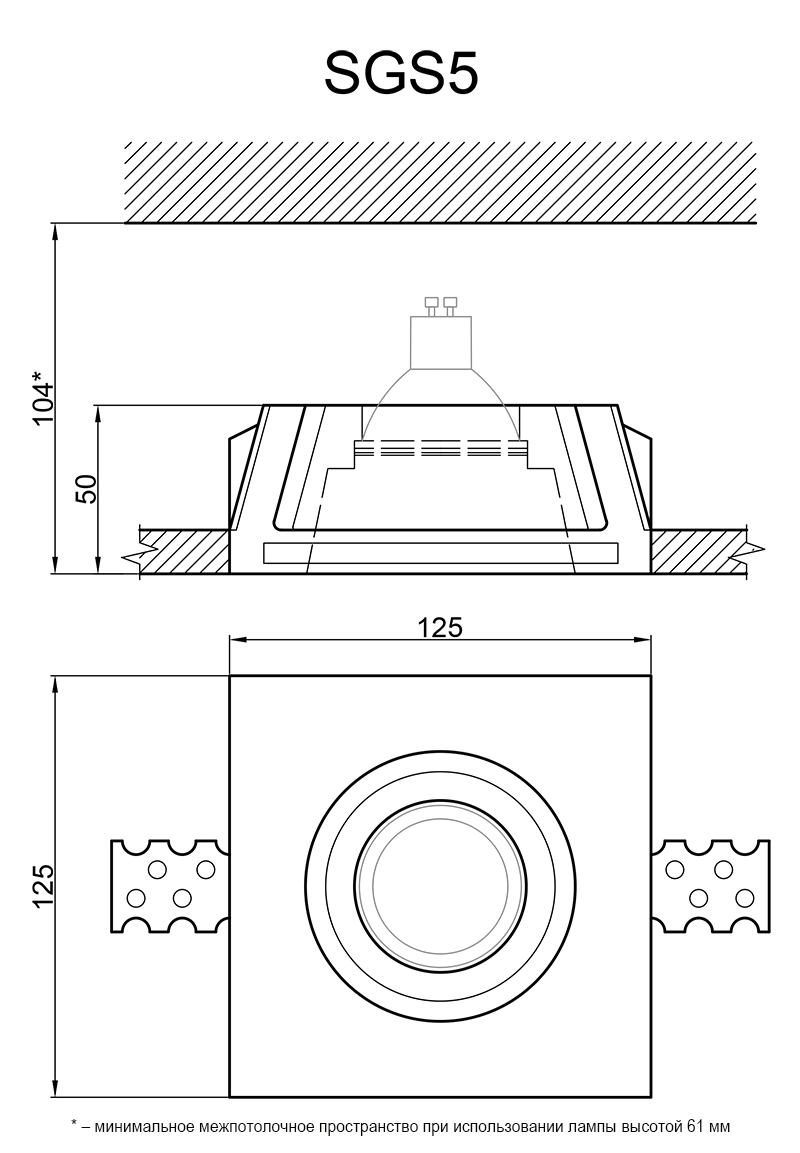 *Монтажное отверстие должно повторять форму светильника и быть на 5мм больше его габаритных размеров