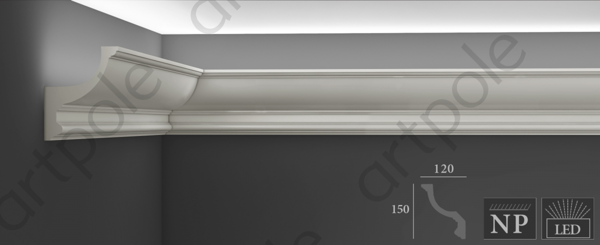 ** Обращаем ваше внимание, что все карнизы по умолчанию производятся со срезанным углом (даже если в каталоге он изображен с прямым углом). Это необходимо для облегчения монтажа.